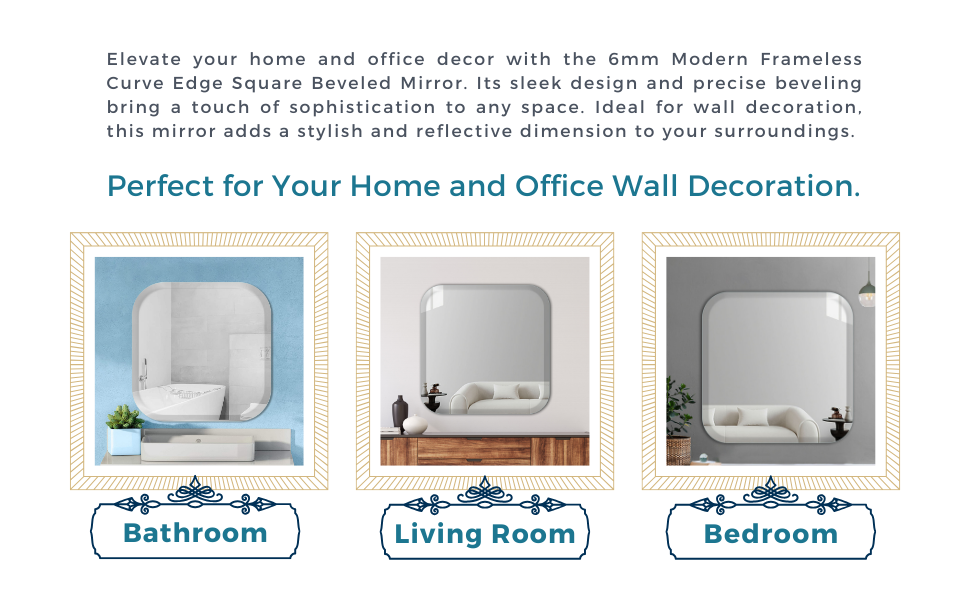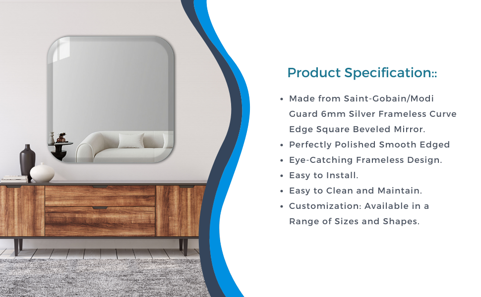 Style/Name of products | Frameless Curved Edge Square Beveled Mirror |