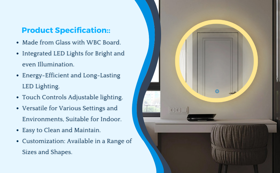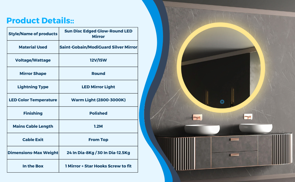 Style/Name of products | Sun Disc Edged Glow-Round LED Mirror |